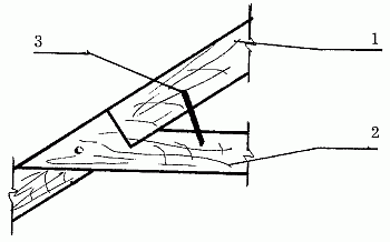 Рис. 22. Скос крыши: 1 – стропильная нога; 2 – затяжка; 3 – скоба