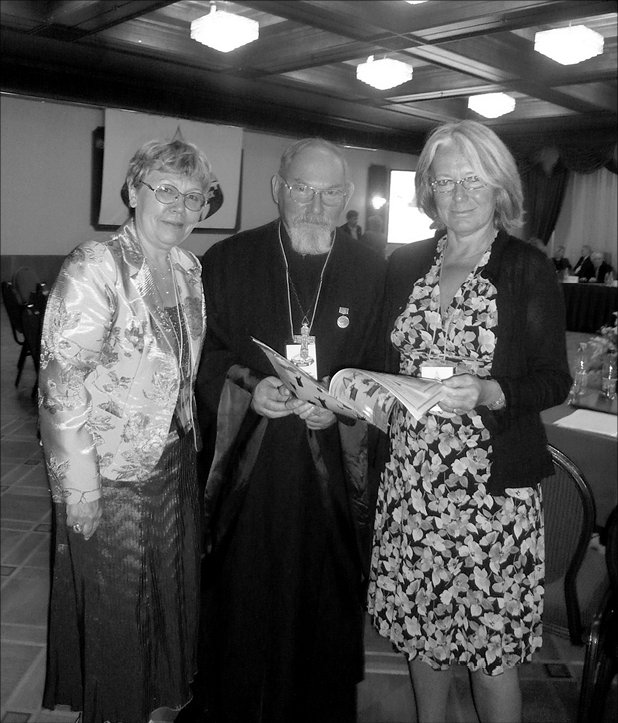 На съезде соотечественников в Москве. Слева направо: Лариса Черкашина, автор книги, о. Николай Солдатёнков, Анна Тури. Фотография. 2008 г. Публикуется впервые