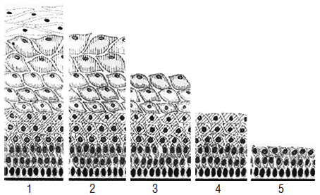 Рис. 2. Степени созревания многослойного плоского эпителия [21]: