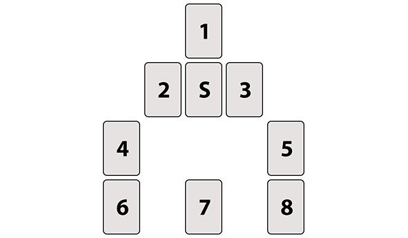 Расклад выполняется с помощью карт Младших Арканов. Если Вопрошающий уже определился с тем, как он будет влиять на ситуацию, то этот расклад обрисует дальнейший ход событий. Не забывайте выбирать Сигнификатор, если он присутствует на схеме.