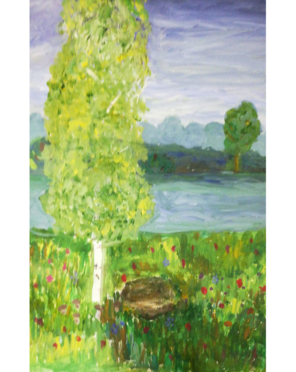 В первый вошли стихи, раскрывающие трепетную душу нашей природы. Этот раздел называется «Берёзка». Ему соответствует стихотворение.