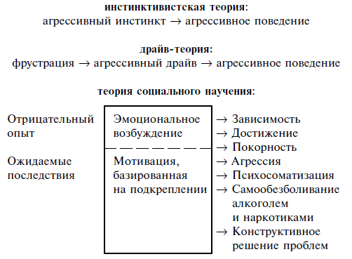 С точки зрения Бандуры, фрустрация – это только один и необязательно наиболее важный фактор, влияющий на агрессивное поведение. «Фрустрация наиболее вероятно должна провоцировать агрессию в людях, которые научены отвечать на отвратительное обхождение (aversive treatment) агрессивными установками и действиями…» – замечает Бандура (Bandura, 1973, р. 58). По его мнению, «агрессия вообще лучше объяснима на основе вознаграждающих ее последствий, чем на основе фрустрирующих условий и наказаний, которые она навлекает» (там же, р. 39).
