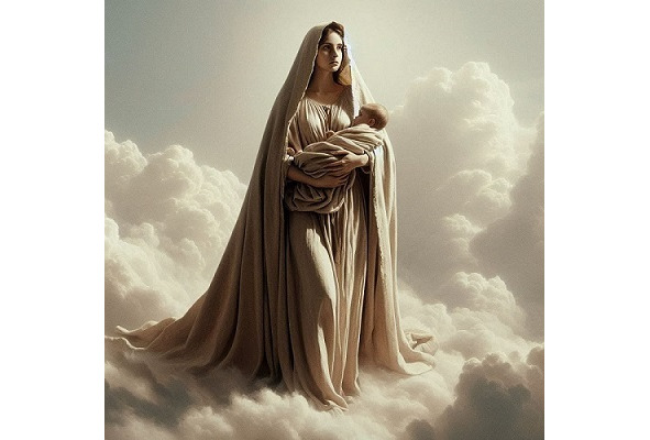 Она шла прямо по небу – стройная, высокая, в простой домотканой длинной накидке, которая начиналась с головы в форме капюшона, прикрывала все ее тело и заканчивалась широким шлейфом, спокойно плывущим сзади нее по легким весенним облакам. Длинное платье из того же материала и такого же светло – кремового цвета – было свободным, скрывало ее фигуру и при этом было все равно необыкновенно женственным. Маленькие босые ноги ступали легко и уверенно. Прекрасное лицо, обрамленное длинными русыми волосами, было слегка наклонено вниз, большие светлые глаза, прозрачные, как родниковая вода, с любовью смотрели на маленькую золотоволосую кудрявую девочку, которую она несла в руках.