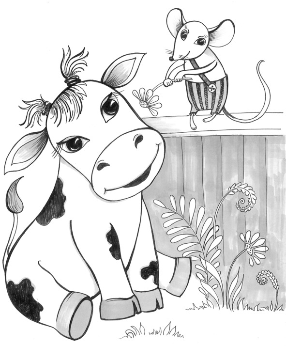 Однажды мышонок взял соломинку и пощекотал носик тёлочки. Она весело помотала головкой, засмеялась и они подружились.