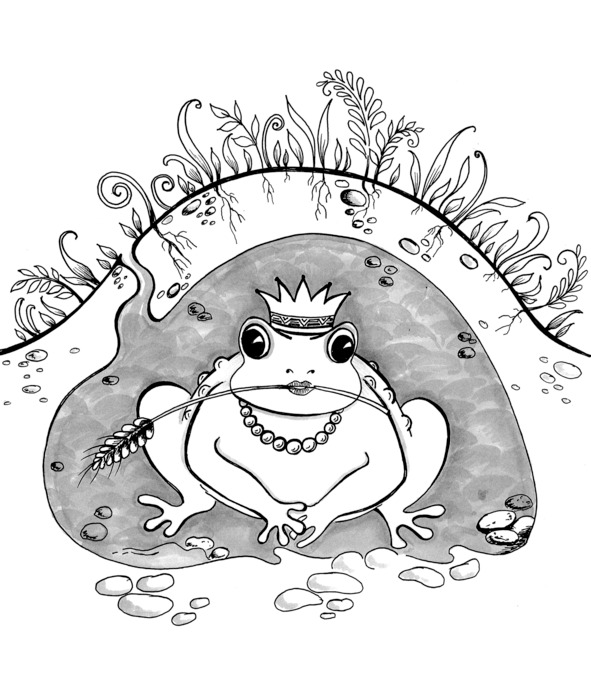 Вот, лягушка видит поле.Хомяков в нём просто море!Толстяки зерно жуют,В норках песенки поют:«Тили-тили-тили-бом!Заходи, лягушка, в дом!С нами летом будешь жить,Наши норки сторожить.Станем мы тебя любитьИ овсом с полей кормить!»И лягушка согласилась,В летнем доме поселилась.Стала в доме подметатьИ соломку подстилать,Хомякам и хомячихам,И зайчихам, и крольчихам.Стала важной, как сова,И с короной голова.Наша хитрая лягушкаПотолстела, как подушка,Вот уж сера, как зола,Норку вырыла сама.Под землёй, на травке мягкой,Отрастила бородавки.Будет зиму зимоватьИ болото вспоминать.Хомяки ей помогают,Тётей Жабой называют.
