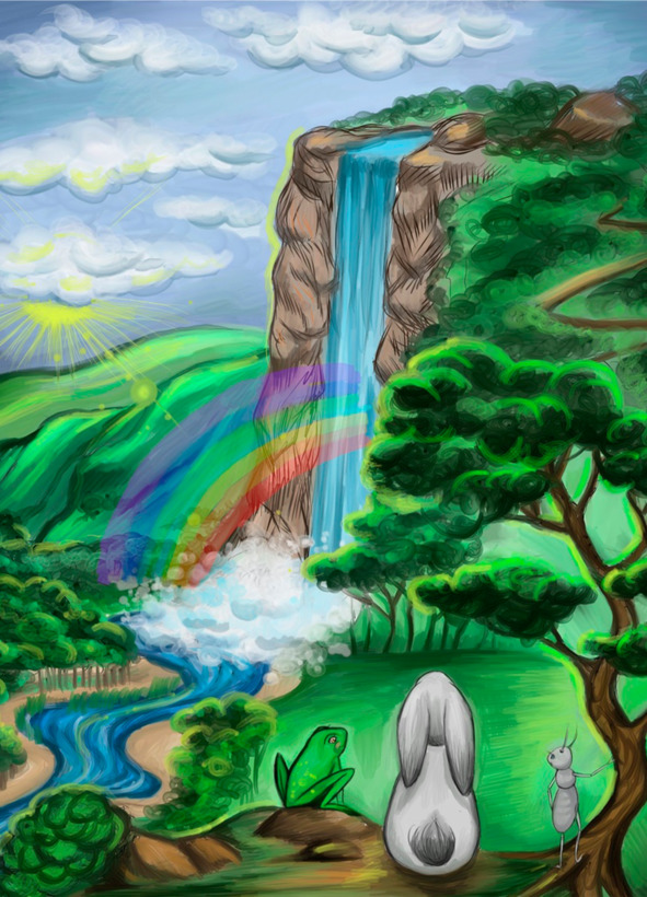 Солнце было уже высоко, когда друзей разбудил голод. В поисках еды они шли вдоль русла и вспоминали головокружительный полет, лунную радугу и свой восторг от пережитого. Дойдя до прибрежных зарослей, каждый нашел чем позавтракать.