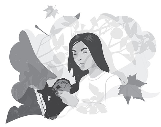 Я больше не могу лежать и смотреть, как на стене танцуют тени. Ветер как музыка. Тени листьев обнимают тени яблок… Тут первый этаж, снаружи яблоня. Август.