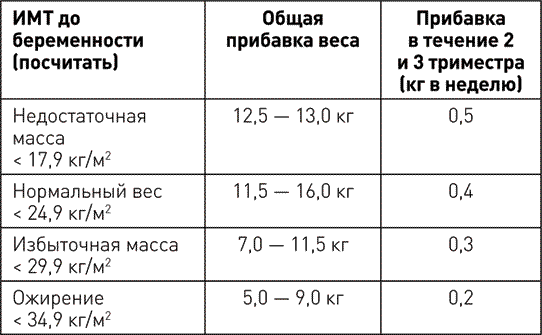 Если до беременности у женщины была избыточная масса тела, ежедневный рацион в этот период следует увеличить лишь на 100–150 калорий для нормальной прибавки веса (см. таблицу).