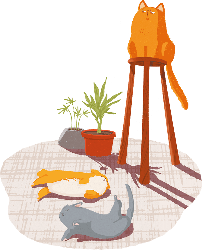 Кроме них двоих в семье был ещё один кот, которого звали Рыжий. Он здесь считал себя самым главным. Рыжий так и любил говорить: «Если вы не понимаете, главный в этом доме я. Я управляю этим миром, ведь я сам когда-то выбрал этот дом, просто придя и упав с крыши беседки на голову будущим хозяевам. Это не они меня выбрали, как вас покупают, породистых котов, а я их выбрал, значит, я – самый главный».