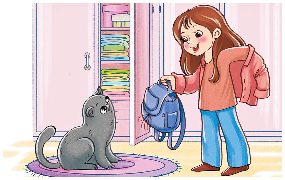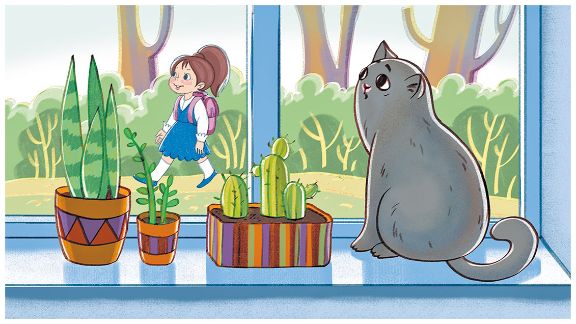 Кисель очень любит разговаривать с Дуней. Как-то он даже рассказал ей все кошачьи секреты! А Дуня рассказала ему о том, что любят или не любят делать люди. Но в последнее время эти душевные разговоры стали происходить всё реже – ведь Дуне исполнилось семь лет, и она пошла в школу. У неё совсем не было времени сидеть с Киселём и болтать: с самого утра она ехала на уроки.