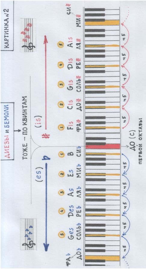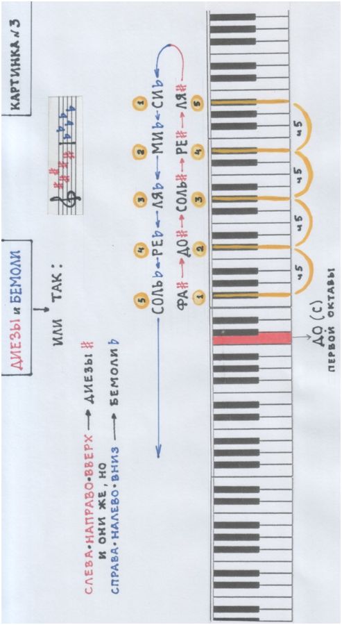 А так – в модели №4 мысль изложена на одной стороне, а в модели №5 – на обеих сторонах (лицевой и обратной: диезные тональности – на лицевой стороне, бемольные – на обратной).