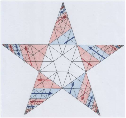 Пентаграмма (пятиконечная звезда) рождает внутри себя множество пентаграмм, подобных ей и друг другу. Это симметрия самоподообия.