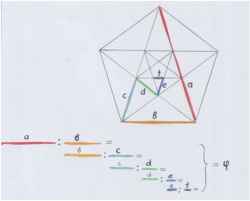 Все отрезки пентаграмм относятся друг к другу в пропорции Золотого сечения.