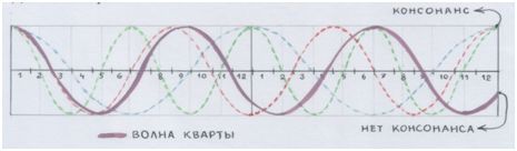 Вот Пифагора интересовала ещё и кварта. Тоже консонанс. Довольно любопытный консонанс. В чём его особенность – мы ещё узнаем.