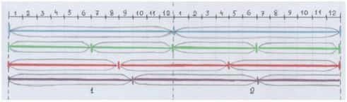 Пифагор, конечно, мог сопоставлять вовсе и не волны, а отрезки струн. Например, вот так: