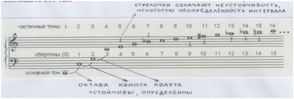 Гармонические призвуки (частичные тоны), имеющиеся в спектре музыкальных звуков. Расположены в ы ш е основного тона, звучат слабее основного тона, сливаясь с ним, на слух почти не распознаются.