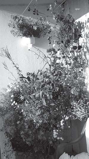 Фото 2. Уголок каскадом в мае (а) и в июле (б) (ящики № 9–12 и два навесных кашпо)
