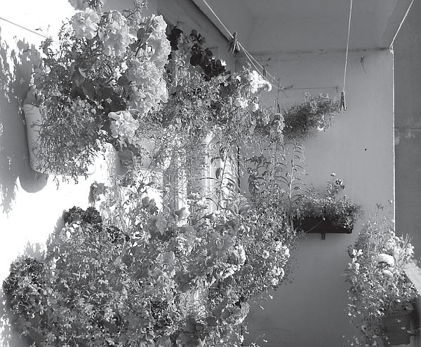 Фото 3. Балкон в июле (ящики № 1–7 и пять навесных кашпо)