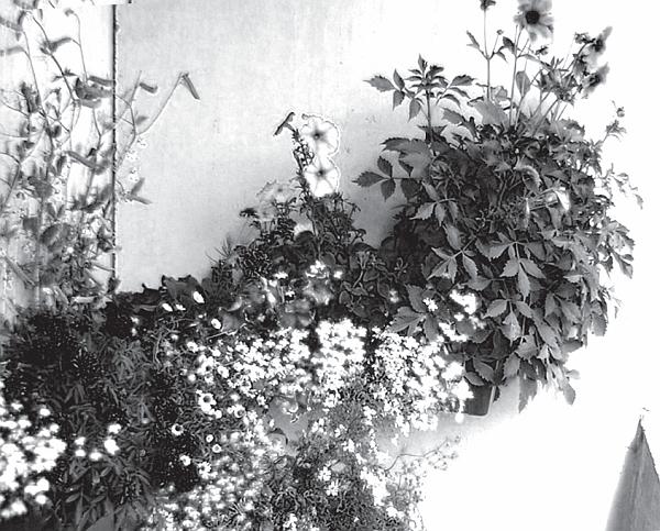• в первый год ближе к солнцу я высадила высокие цветы (георгины), за ними совсем загрустила петуния, а на дальнем конце чахлые, лишенные солнца цветочки так и не набрали силу, что видно на фото (а), сделанном в августе;