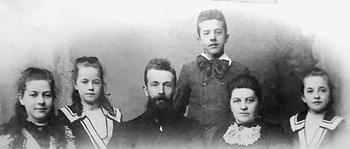 Семья тен Бум в 1902 году. Слева направо: Бетси, Нолли, Каспер, Виллем, Кор и Корри