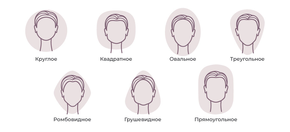 Выделяют 4 основных типа лица: круглое, квадратное, треугольное и овальное. Также можно выделить три подтипа – ромбовидное и грушевидное (как разновидности треугольного) и прямоугольная форма (как разновидность квадратного типа).