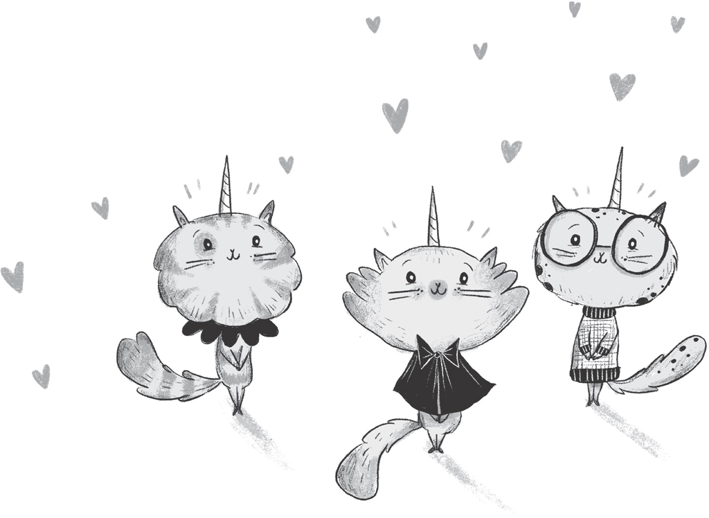 Amelia’s eyes widened as three caticorns with fluffy fur and shiny little horns trailed through the door. Amelia squealed in excitement. As they stood in a neat row, smiling sweetly, she thought that they were the most adorable creatures she’d ever set eyes upon (aside from Squashy of course!). Looking after them was going to be such a treat.