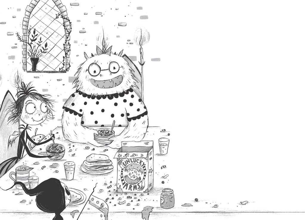 It was a delightfully dreary Saturday evening. Amelia Fang munched on a bowl of Unlucky Arms cereal with her two best friends, Florence and Grimaldi. The big fluffy yeti and tiny grim reaper were staying over at the Fang Mansion for a weekend of frightful fun.