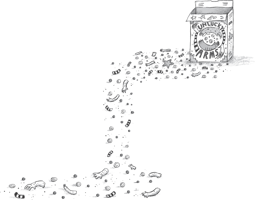 ‘O.M.GENIES!’ cried Florence, picking up the box of Unlucky Arms. ‘YOU CAN WIN A LIMITED EDITION UNICORNELIUS PINE TOY?!’