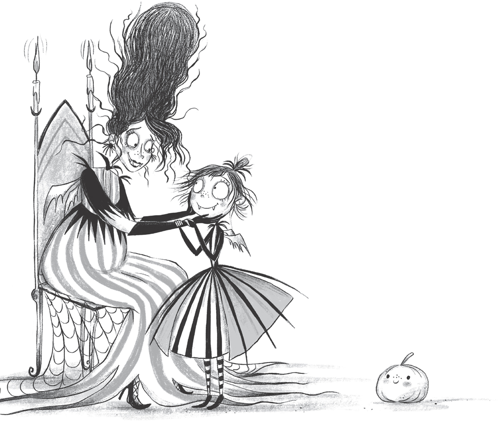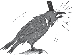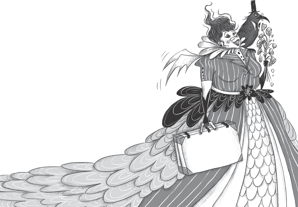 Wearing a high-collared gothic dress with frills in places you’d never imagine, Aunt Lavitora strutted into the entrance hall carrying a large suitcase in one gloved hand and a bunch of withered roses in the other. She looked like a version of Countess Frivoleeta who had been stretched widthways. A messenger crow with a top hat and a monocle perched on her shoulder.