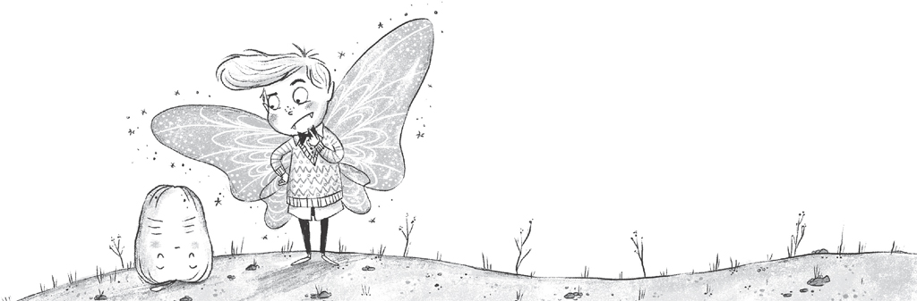 Amelia and her friends approached the classroom, where a plump and wrinkly man with thick-rimmed glasses, a big curly moustache and huge fairy wings was waiting by the door.