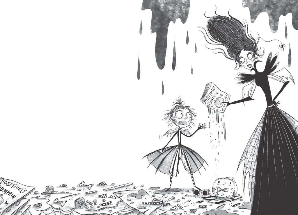 ‘I have had enough, Amelia!’ said the countess, holding up a hand. She picked up a copy of Positively Pumpkin. ‘You’ve always got your head stuck in this silly magazine! You’ve been neglecting your vampiress etiquette studies and organ practice for too long now.’