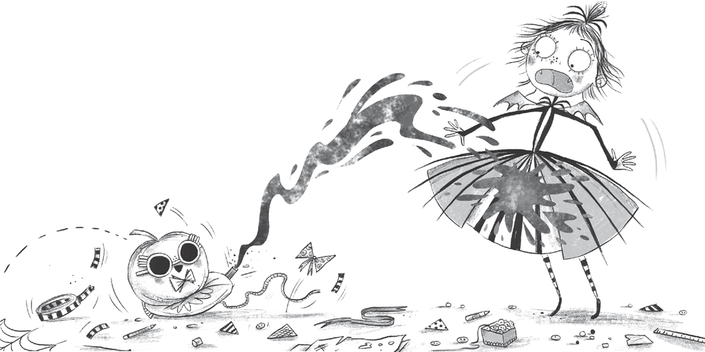 The countess made a strange noise. ‘Amelia Fang! It’s like you’re living in a goblin cave. Wooo is waiting for you in the organ room, so tidy this mess up and then go downstairs for your practice. Quick-smart my dismal one!’