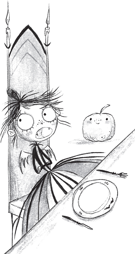 ‘Enough chitter-chatter. Now, Amelia, eat up before your falafels get cold, then off to bed,’ said Countess Frivoleeta, prodding at Amelia’s cheeks. ‘We must keep your skin looking pale and death-like!’