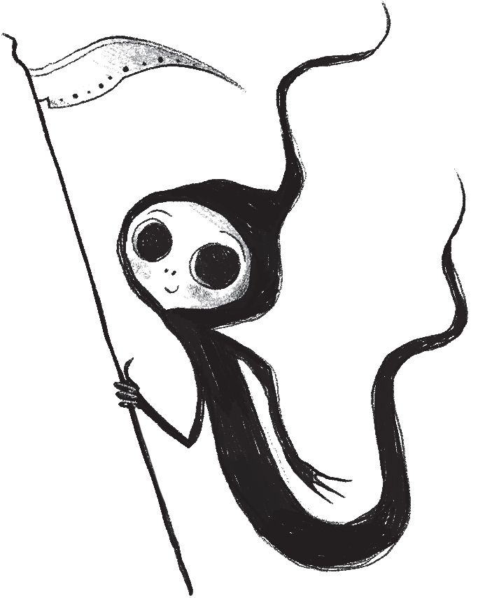 ‘Hi, guuuuys!’ came a high voice from across the graveyard. It was Grimaldi Reaperton, Amelia’s other best friend.
