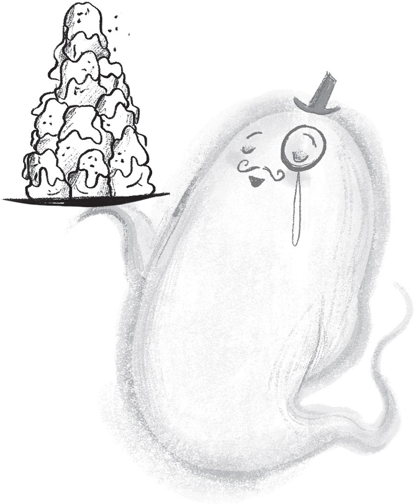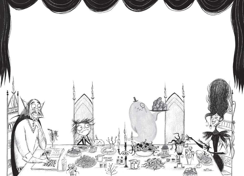 ‘Your Flabbergasting Falafels, Countess,’ said Wooo. He was the most respected ghost butler in all of Nocturnia.