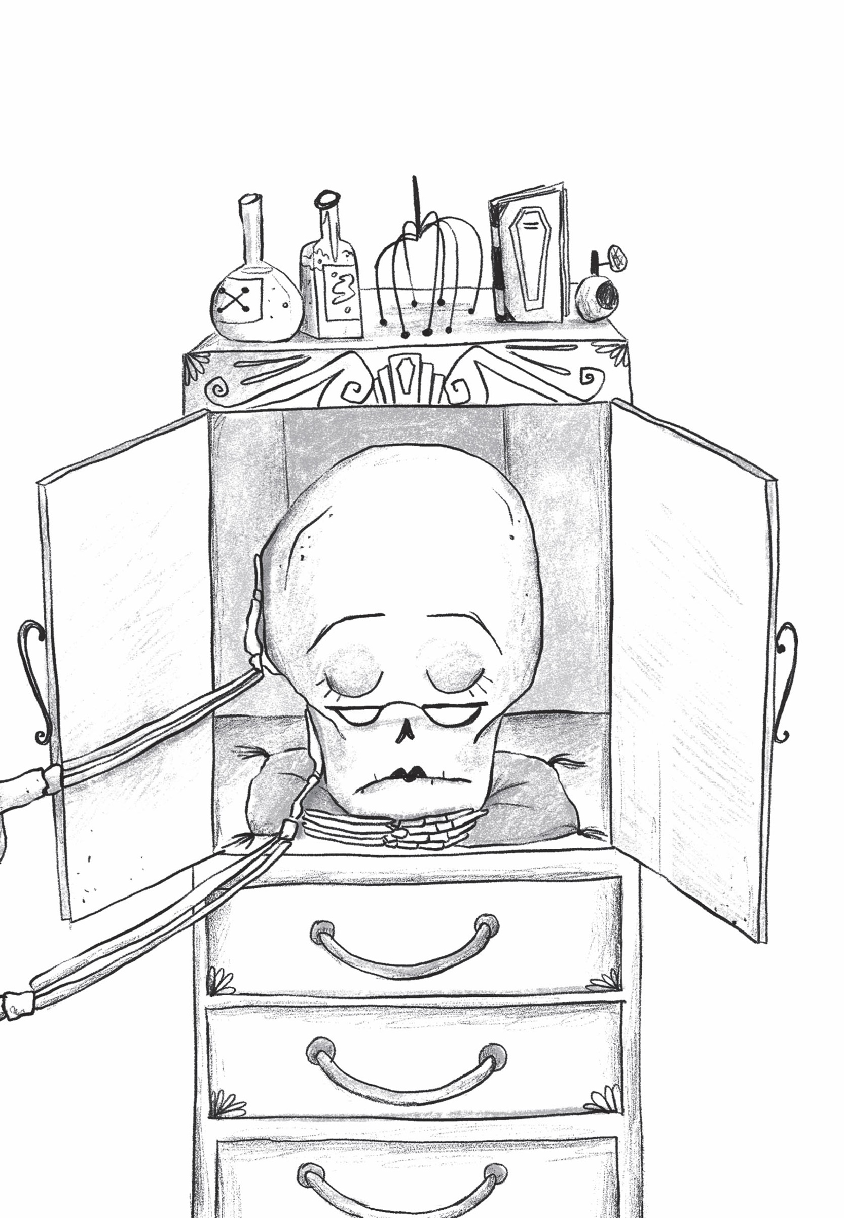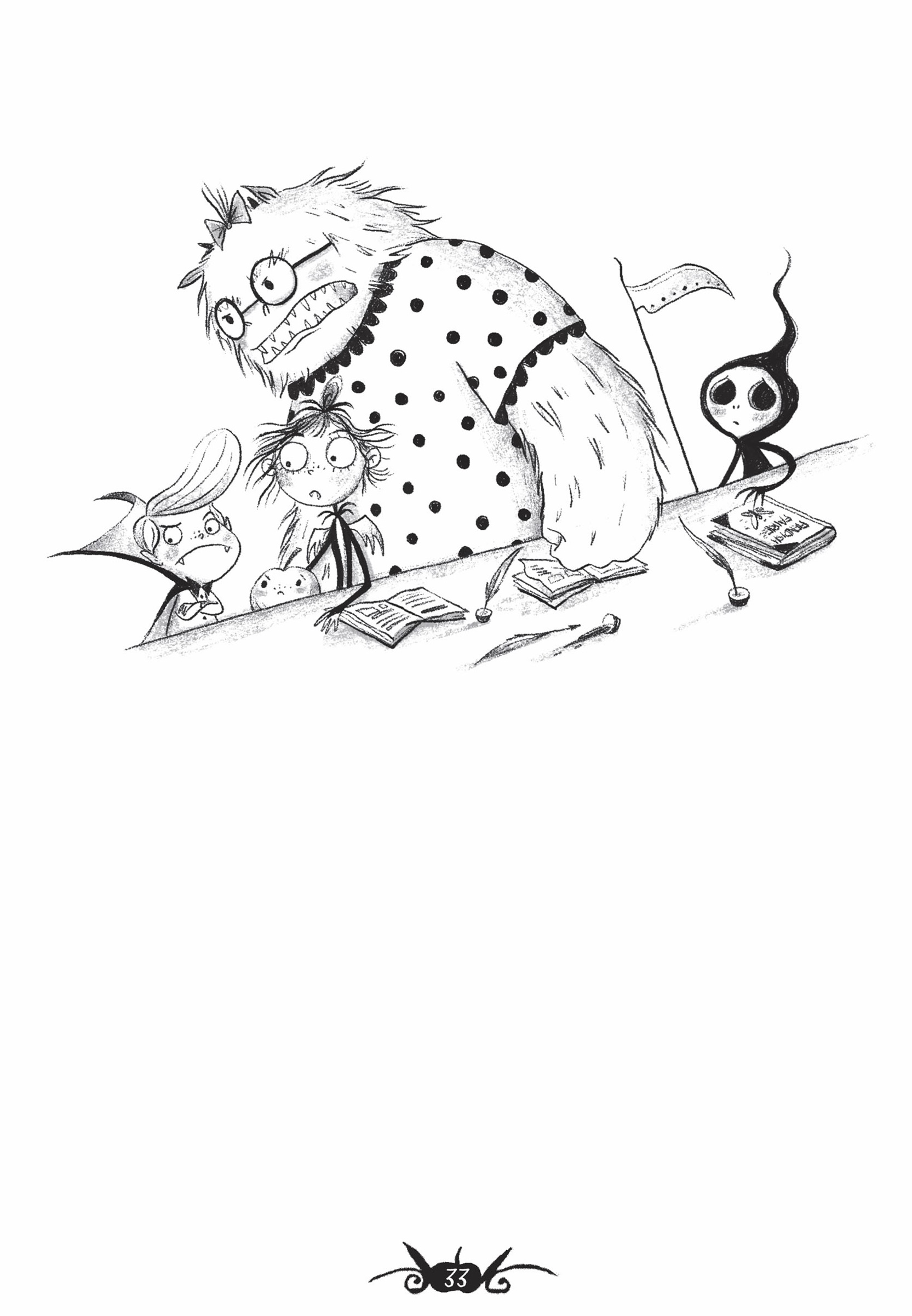 ‘Oh, thank the grave,’ breathed Miss Inspine. ‘I thought you’d lost the prince, Amelia. Chop chop, you’ve made him late for class!’