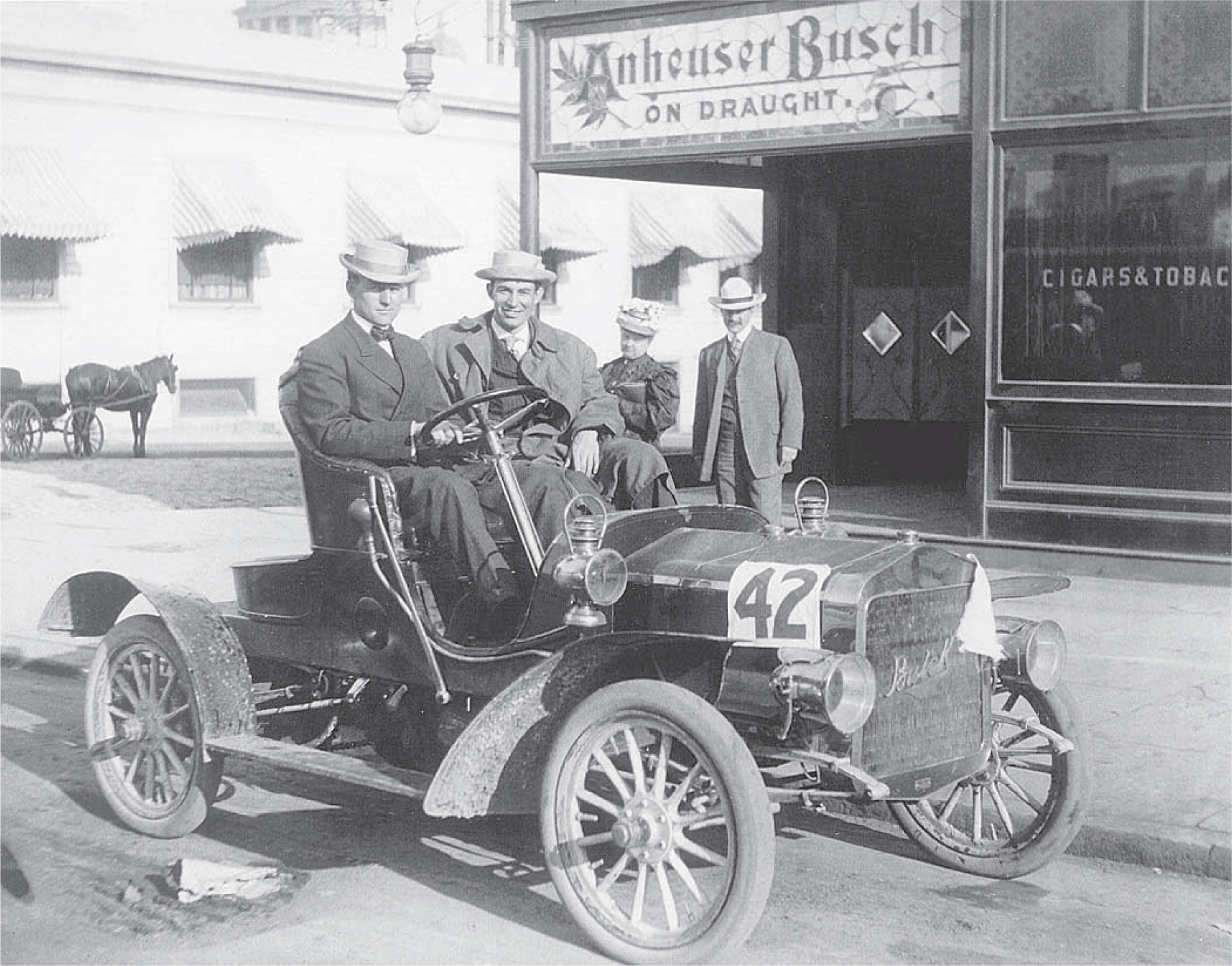 Howard lost everything but his cars, but he had been insured. The reimbursement check that arrived at his door offered him a painless way out of his automobile venture. But Howard was certain that he could coax his new city into the automotive age. The earthquake had already done half the work for him, proving the automobile’s superiority to the horse in utility. Two weeks after the quake, a day’s rental of a horse and buggy cost $5; a two-seated runabout cost $100 a day. All Howard needed to do was prove his automobiles’ durability. He put up one of the first temporary buildings in the quake’s aftermath, moved the cars in, and set out to craft a new image for Buick.