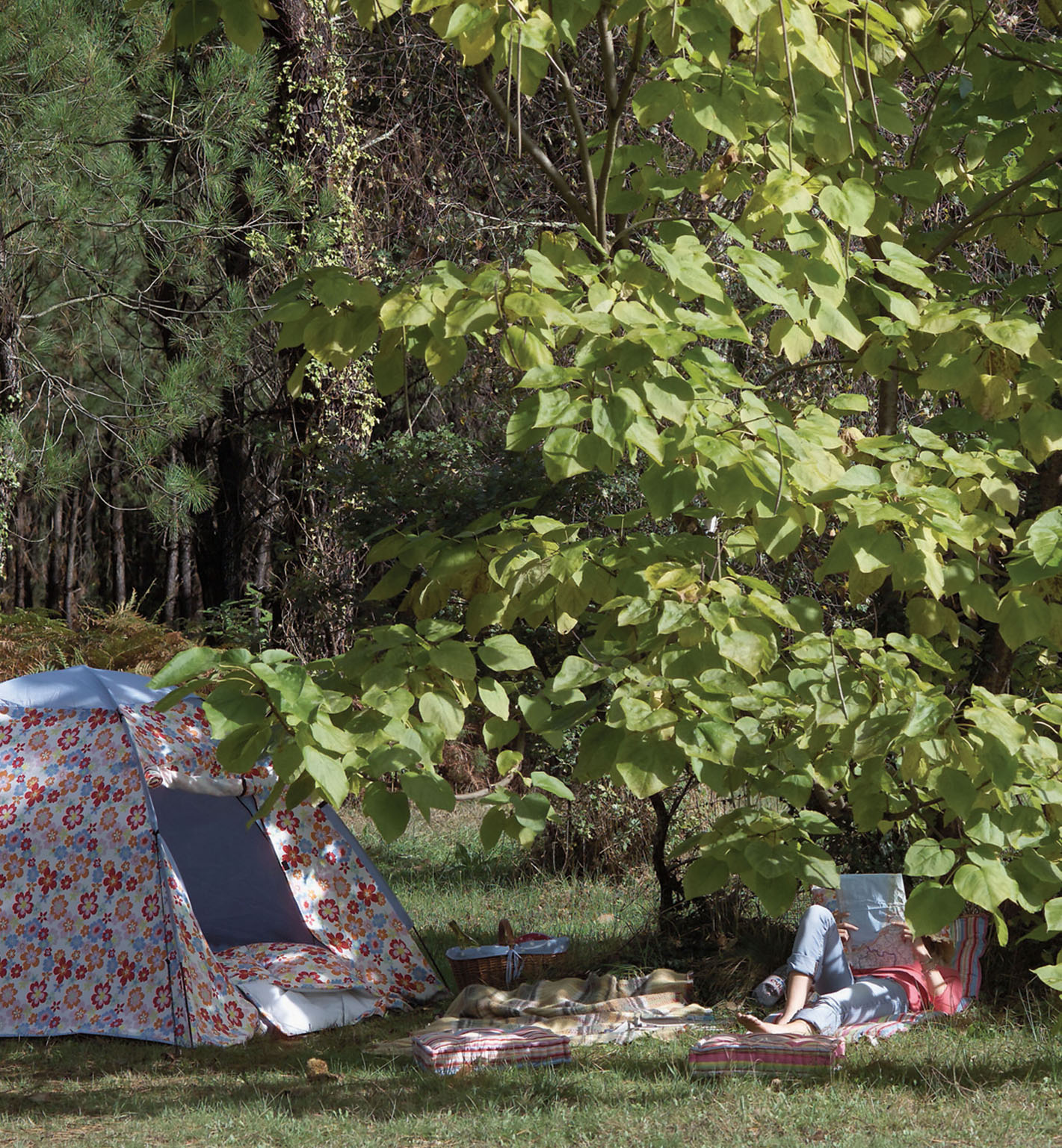 Today it’s about style, comfort and a sprinkling of glamour. Think Kate Moss at Glastonbury, Airstreams and T@b caravans. Drift off into a fantasy of vintage VW campers, bright white tipis stretching skywards and pretty tents peppered with flowers. Arguably, it was Cath Kidston’s delicious floral tent which kicked off the latest camping craze.