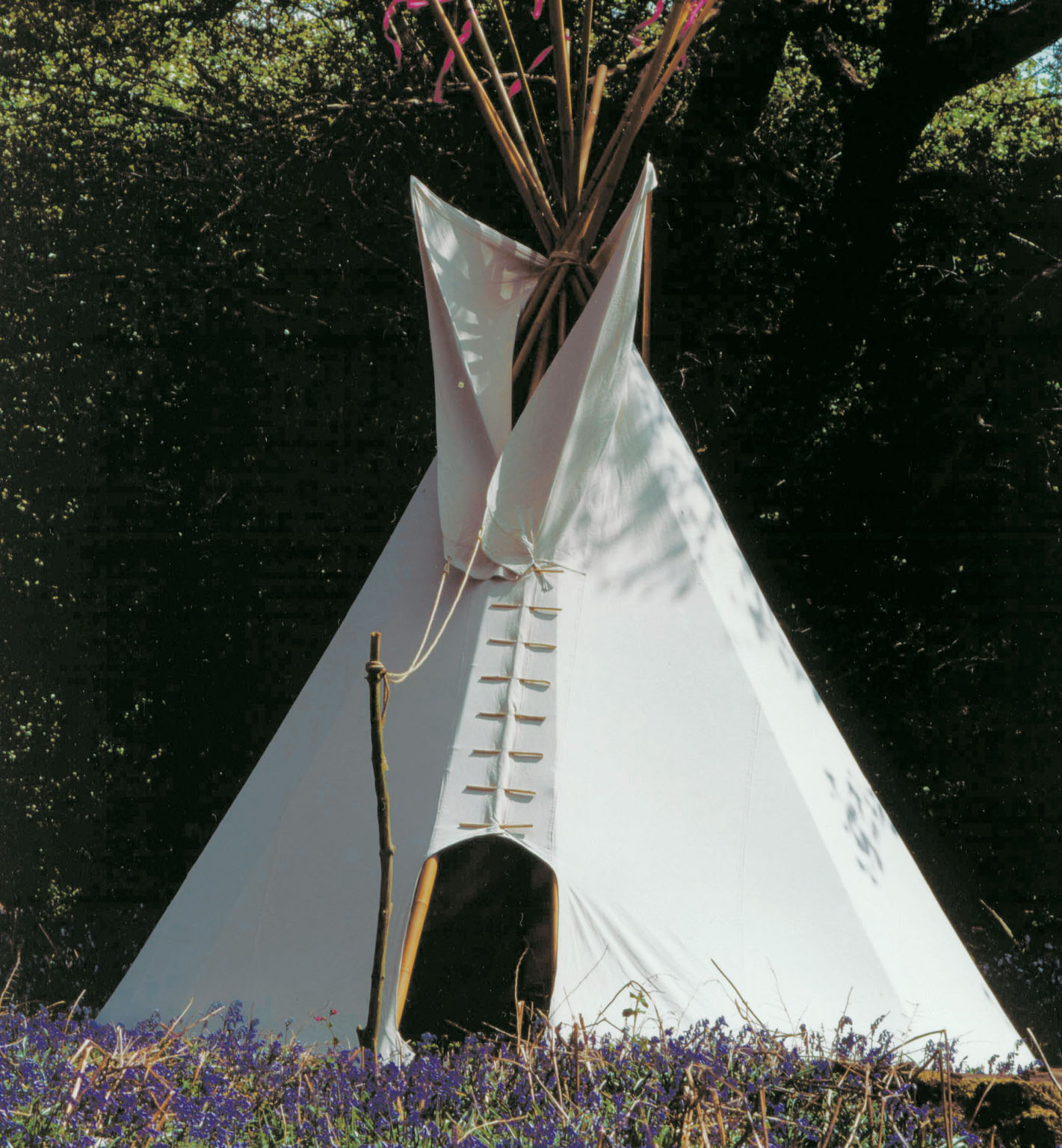 The magic of sleeping in a tipi is almost indescribable. Watching the stars through the open smoke flaps, while lying next to a roaring fire, is a wonderful experience. The tipi is probably the most elegant and graceful of all temporary structures and its beauty lies in its simplicity.