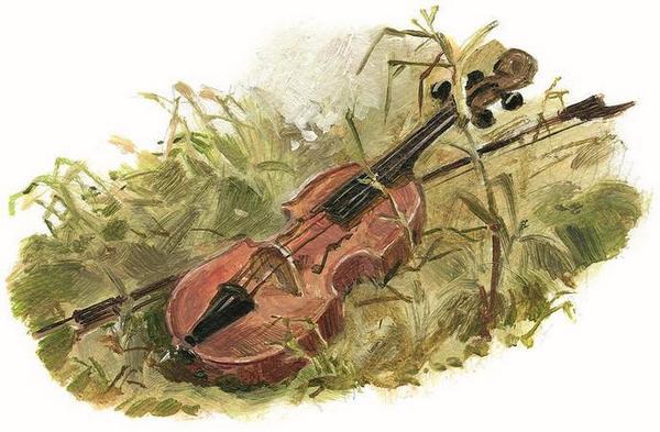 «А не поужинать ли мне на берегу ручья? – подумал он. – Посижу на травке, возьму скрипку и поиграю немного, пока мама с папой не вернутся!»