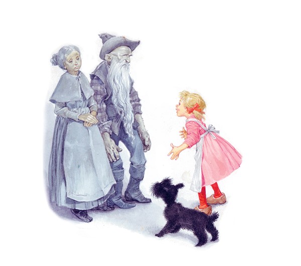 Только пёсик Тотошка развлекал Дороти, не давая ей поддаться царившей вокруг серости. Тотошка не был серым. У него была очаровательная шелковистая шёрстка, забавный чёрный носик и маленькие задорные чёрные глазки, искрившиеся весельем. Тотошка мог играть с утра до вечера, и Дороти души не чаяла в своём верном друге.