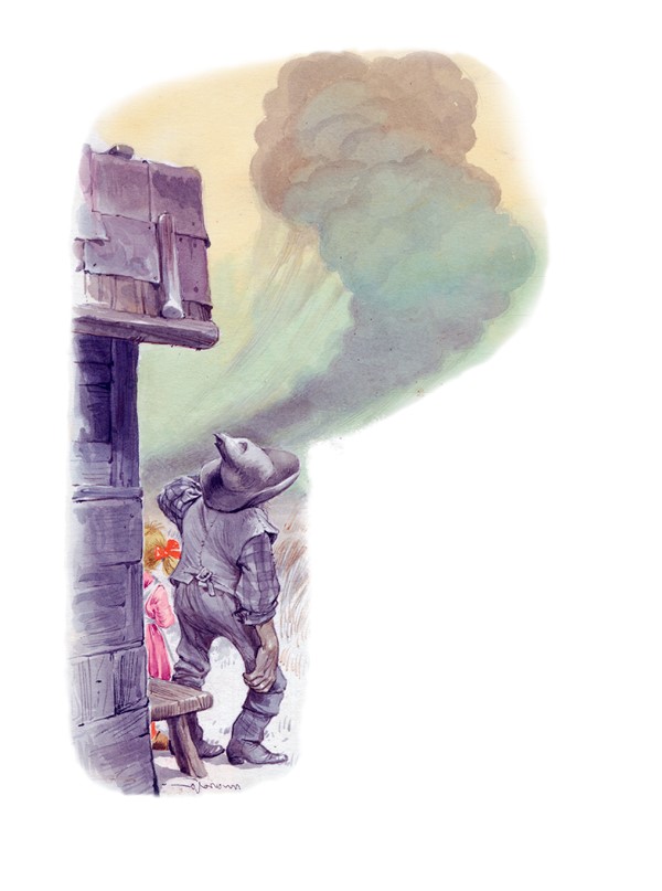 Выйдя из дому и глядя по сторонам, Дороти видела вокруг только степь. Она тянулась до самого горизонта: унылая равнина – ни деревца, ни домика. Солнце в этих краях было таким жарким, что вспаханная земля под его жгучими лучами моментально превращалась в серую запёкшуюся массу. Трава тоже быстро делалась серой, как и всё кругом. Когда-то дядя Генри покрасил домик, но от солнца краска стала трескаться, а дожди окончательно её смыли, и теперь он стоял такой же уныло-серый, как и всё остальное. Когда тётя Эм только приехала в эти места, она была хорошенькой и жизнерадостной. Но палящее солнце и свирепые ураганы сделали своё дело: из её глаз быстро исчезли задорные искорки, а со щёк – румянец. Лицо посерело и осунулось. Тётя Эм похудела и разучилась улыбаться. Когда осиротевшая Дороти впервые попала в этот дом, её смех так пугал тётю Эм, что она всякий раз вздрагивала и хваталась за сердце. Да и теперь, стоило Дороти рассмеяться, тётя Эм удивлённо смотрела на неё, словно не понимая, что может быть смешного в этой серой жизни.