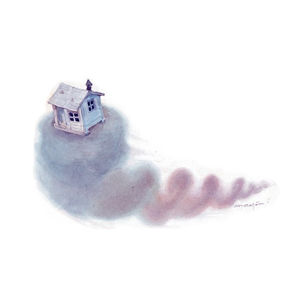 Дом несколько раз повернулся вокруг своей оси, а затем стал медленно подниматься в воздух, словно воздушный шар.