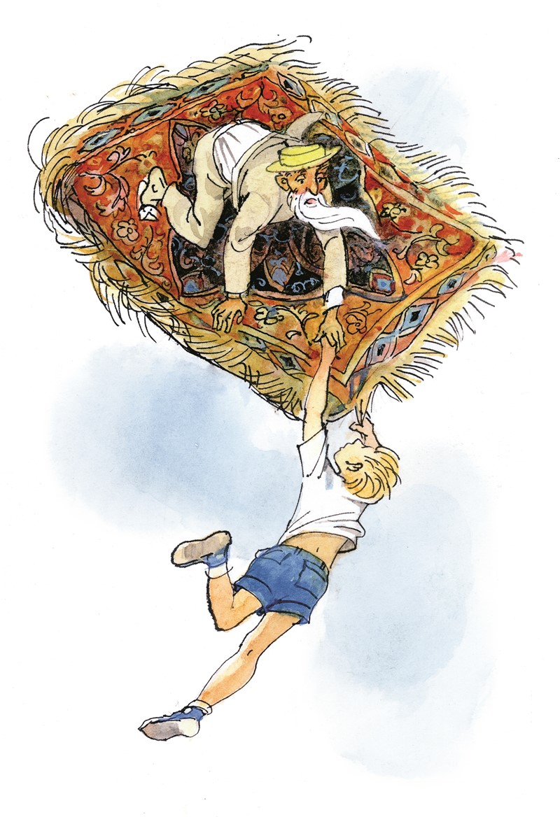 В одном уголке ковра-самолета ворс был в неважном состоянии – это, наверное, постаралась моль. В остальном же ковер отлично сохранился, а что касается кистей, украшавших его, то они бы ли совсем как новые. Вольке показалось даже, что он уже где-то видел точно такой ковер, но никак не мог вспомнить где. Не то на квартире у Сережи, не то в школе, в учительской.