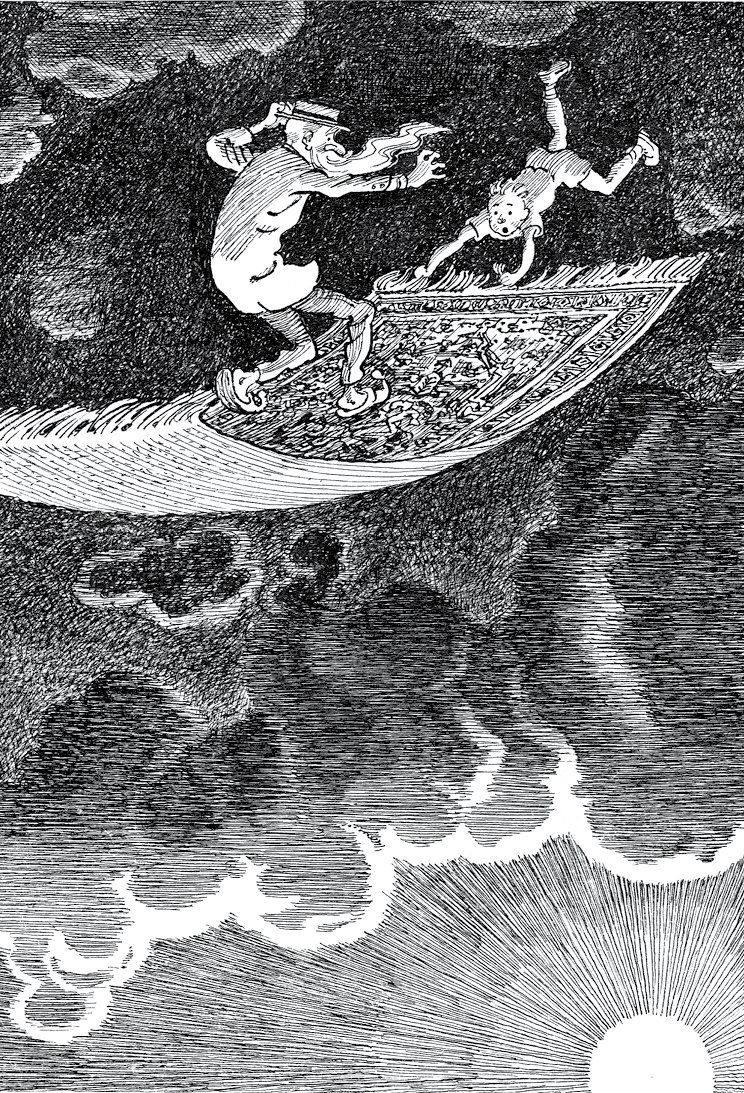 – О отрок, подобный обрезку луны, одно дело было забросить твоего друга в Индию. Для этого потребовалось ровно столько времени, сколько нужно, чтобы сосчитать до десяти. Другое дело – лететь на ковре-самолете. Видишь, мы уже сколько летим, а ведь пролетели едва одну десятую часть пути. Так не вернуться ли нам обратно, чтобы не превратиться в кусочки льда?