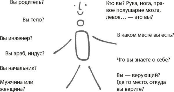 Покажите на себя. Скажите: «Вот это я». Куда вы показали? В область груди? А теперь покажите жестом: «вот мои мысли обо мне». Куда вы показали? На голову? Интересно, не правда ли? Нашими жестами мы демонстрируем подсознательное понимание того, кто мы есть.