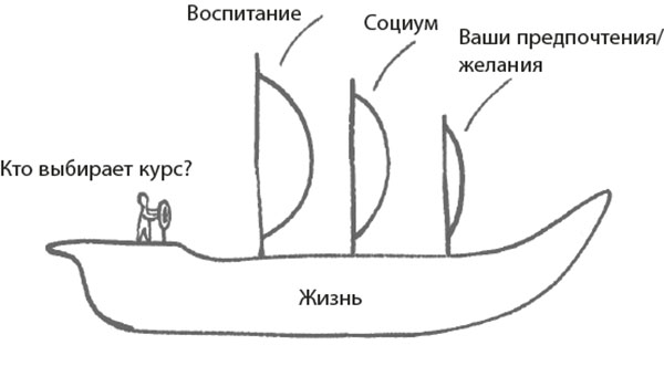 В-третьих, ваши личные предпочтения. Кстати, а почему они не на первом месте? Ответ прост: потому что вы никогда не задумывались, кто же вы такой и какие именно у вашего «Я» есть предпочтения. Естественно, вы возразите, что задумывались, однако погодите делать выводы. На самом деле задумывалось не ваше «Я», а ваш набор первых двух наслоений. Первые два паруса, которые вас тянут в океане. Ваш третий, по смыслу главный парус, находится впереди других, но ветром он не наполнен. Первые два его заслоняют собой.
