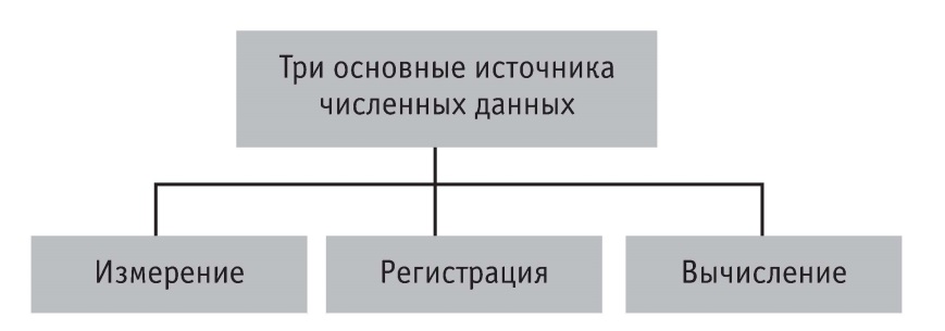 Помимо измерения и говорящей самой за себя регистрации данных новые численные данные также появляются из уже имеющихся посредством вычислений. И измерения, и вычисления осуществляются людьми, иными словами, в реальном мире чисел не существует, все данные – это то, что произведено человеком. Значение слова «первичный» в выражении «первичные данные» совсем не то же, что в выражении «первичный лес». «Первичный (первобытный) лес» – это лес, существующий в созданном природой виде, тогда как «первичные данные» – это всего лишь данные, полученные из первоисточника и не изменявшиеся человеком.