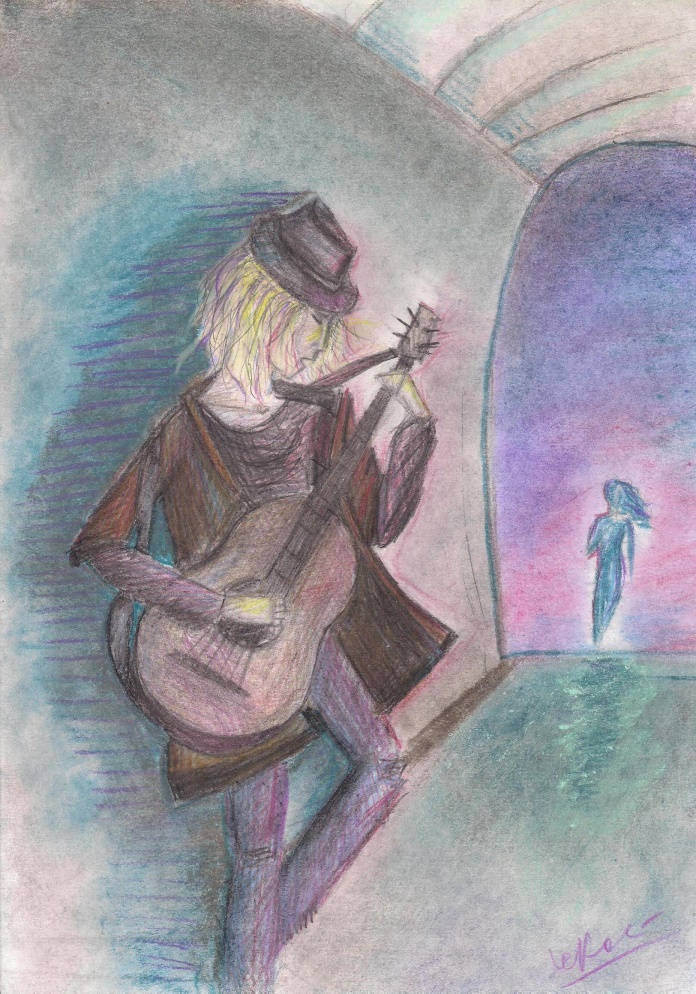 Дальше всё было как в тумане. Никогда не умел драться, а тут во мне прямо проснулся скрытый талант. Я сбил противника с ног. Трое его приятелей кинулись поднимать его, что спасло меня от продолжения драки, которую я, сдаётся мне, проиграл бы. Поэтому, воспользовавшись моментом, я поспешил к выходу из подземки. Притаившись у стены, девушка наблюдала за происходящим и, когда увидела моё спешное тактическое отступление, поспешила за мной. Я схватил гитару, и мы побежали прочь.