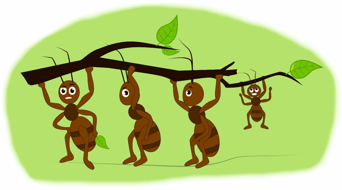 Муравьи, как маленькие солдаты, шли друг за другом, нагруженные палками и песчинками.